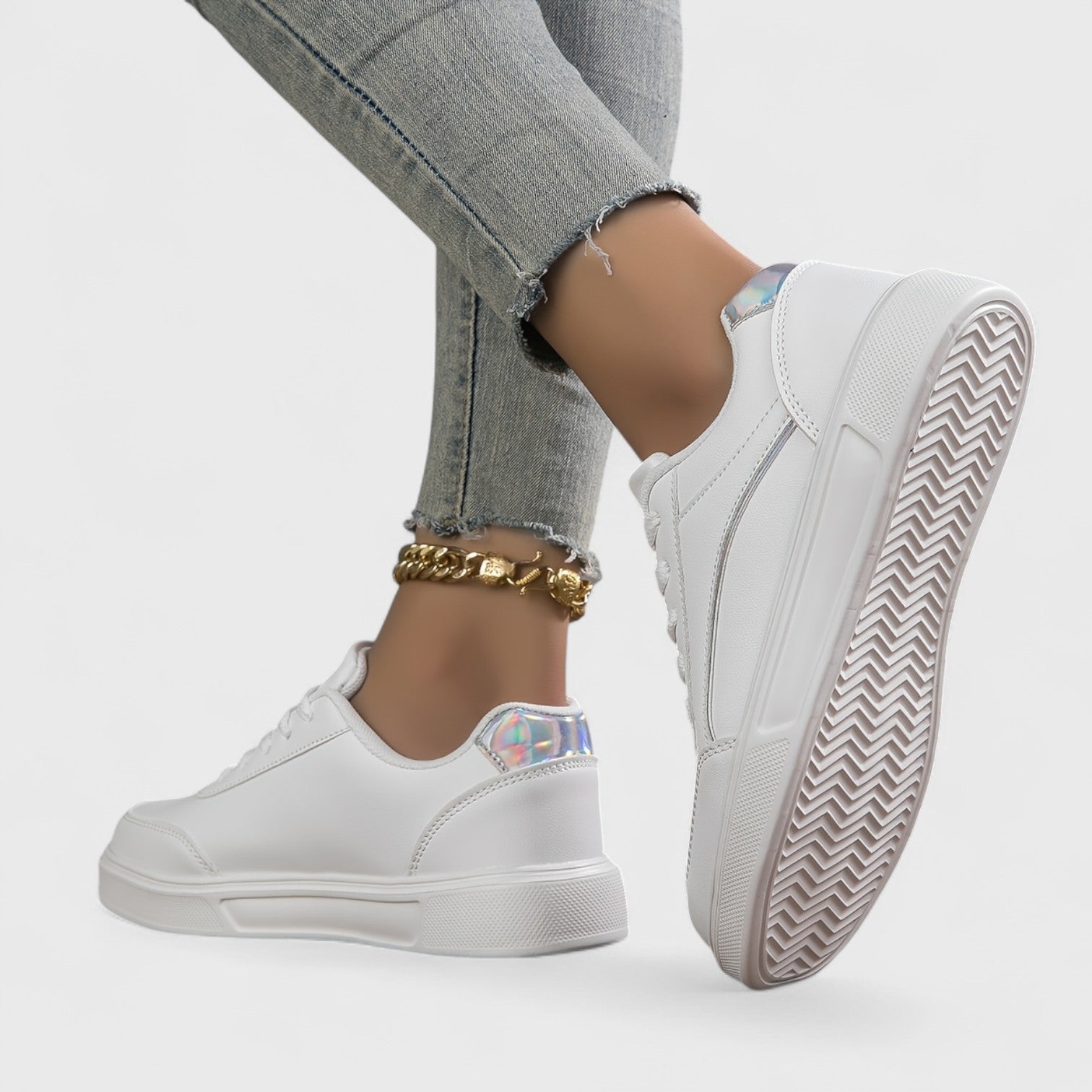 Leur coupe basse et leurs détails pailletés subtils ajoutent une touche lumineuse à vos tenues, du matin au soir, que ce soit pour une promenade, un café entre amies ou une journée active.