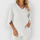 Diane | Blouse à col en V et manches courtes