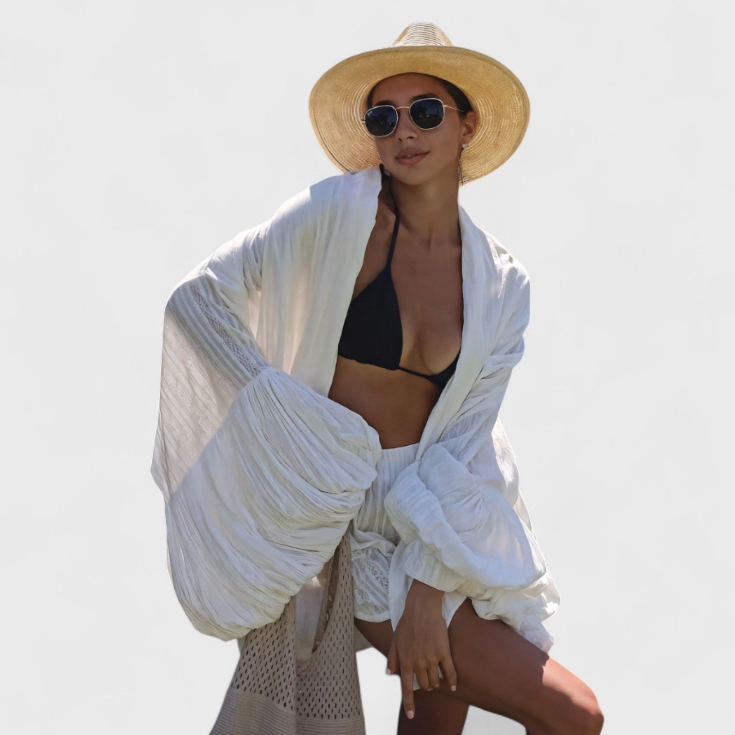 Solène combine audace et élégance pour un look qui ne passe pas inaperçu. Sa cape fluide à manches bouffantes et son pantalon taille haute créent une silhouette flatteuse, adaptée à toutes les morphologies. Idéal pour un événement spécial, une réunion ou une sortie élégante, cet ensemble offre confort, légèreté et allure haut de gamme du matin au soir.