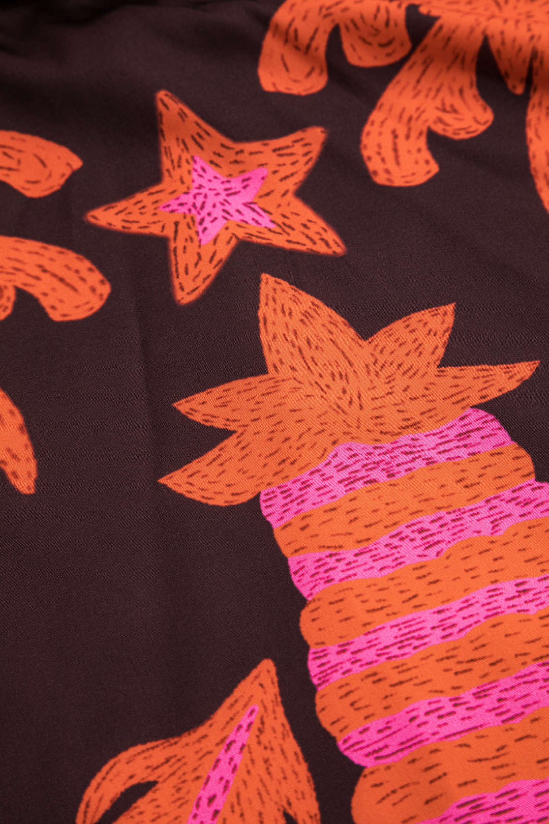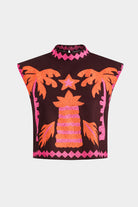 - Broderies éclatantes représentant des palmiers, étoiles et oiseaux tropicaux, pour un style joyeux et coloré.
