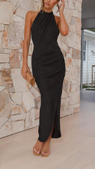 Sophie | Robe longue plissée en satin
