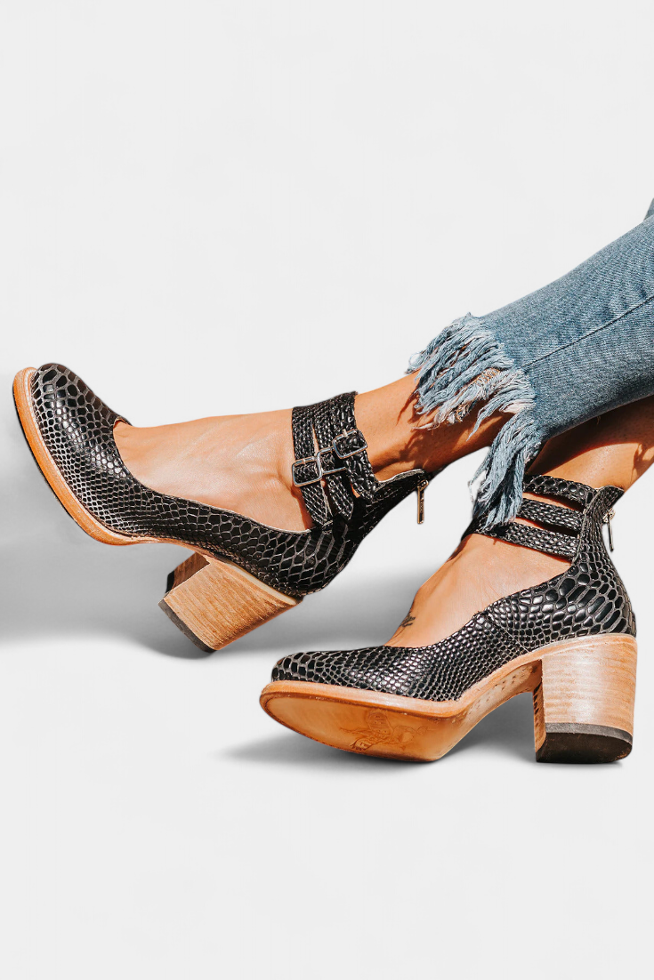 Frédérique | Talons blocs modernes en cuir noir